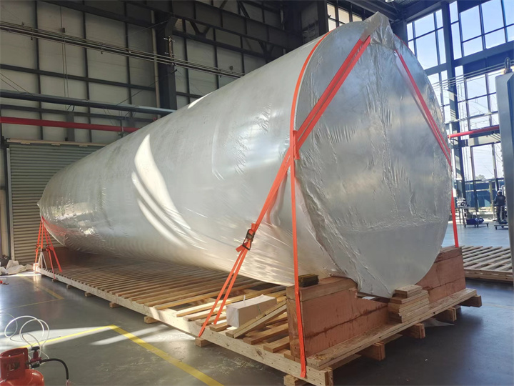 对于客户这种大罐设备,我们和客户沟通,确定了热缩膜作为内包装,框架木箱做为外包装。
